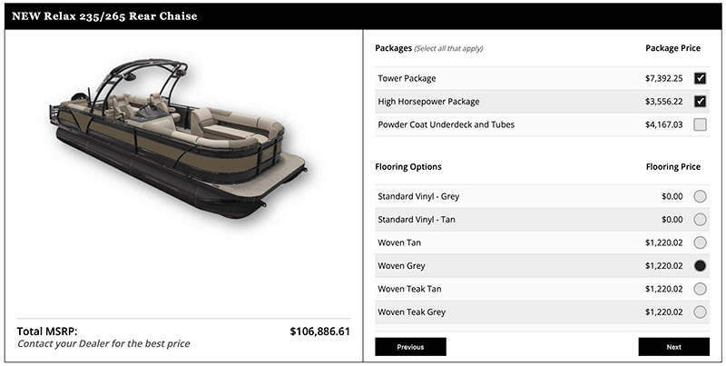 - The retail consumer's contact information and specific boat build will be emailed to the sales representative and nearest Veranda dealer, plus it will be stored on the website and accessible via the “View Previous Builds” button at the top of the dealer portal.