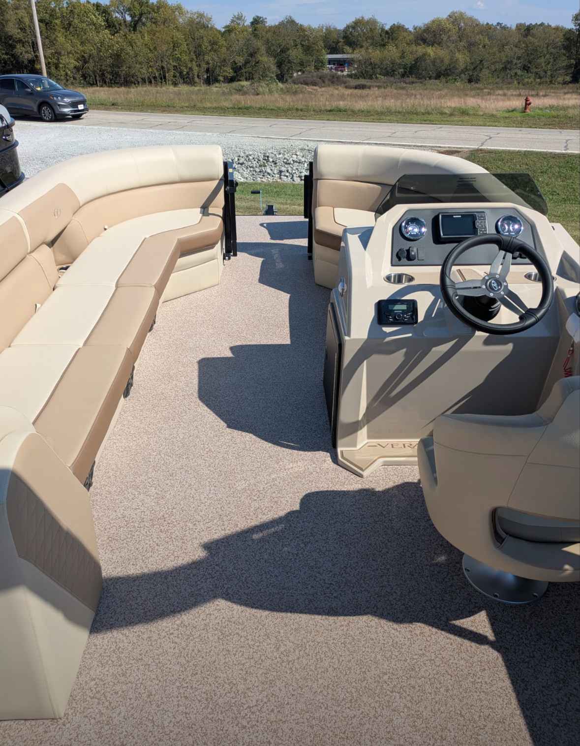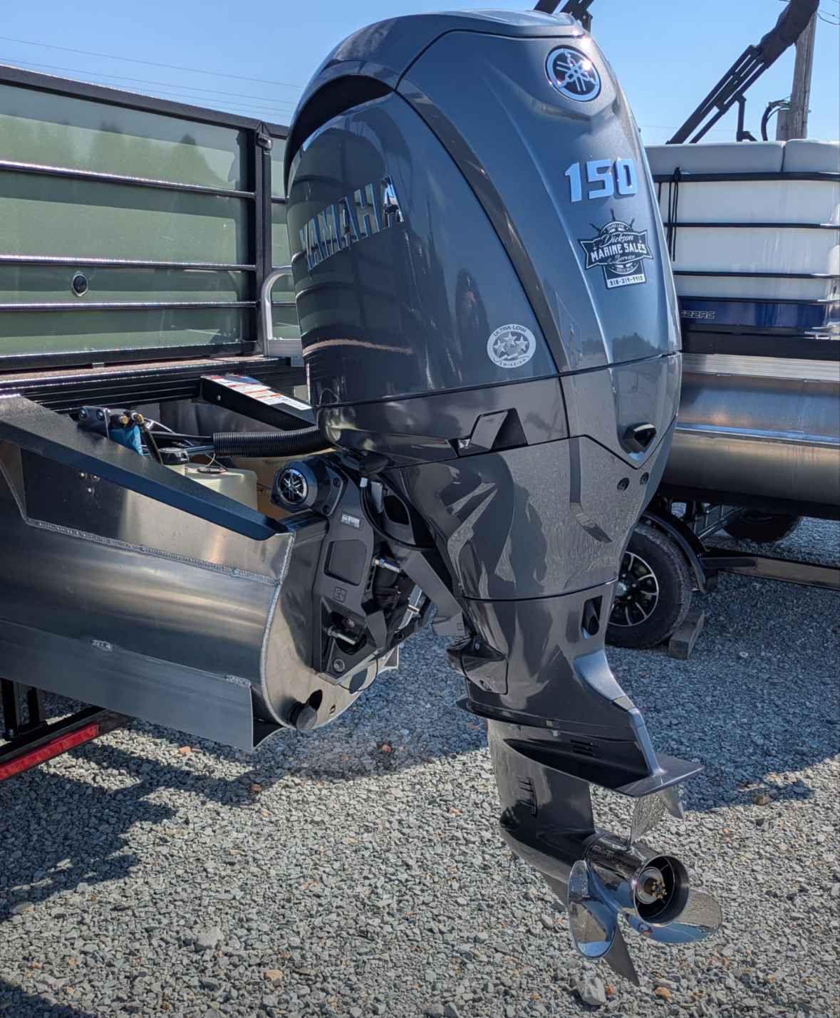- Power and Performance: This tritoon is equipped with a Yamaha F150 outboard engine. The triple toon design and hydraulic steering contribute to a smoother ride and improved handling, even in choppy water.